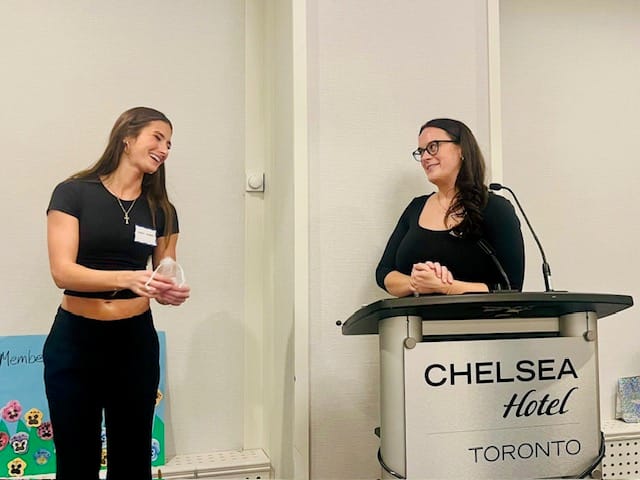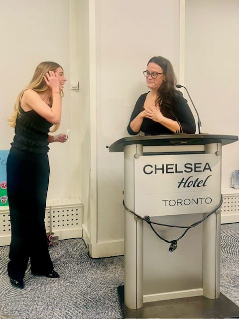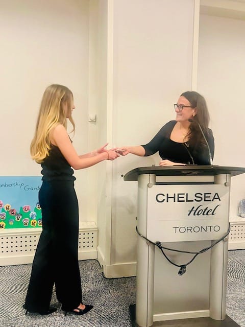 The second award was the New Member Scholarship Award, recognizing a current second year collegiate member with the highest grade point average at the end of the first semester she was a member. This year’s recipient is Isabelle Suski (top photos) who is currently pursuing a HBSc in Life Sciences. Isabelle, also known as Izzy, is the collegiate Director of Administration and also the Outreach Director for the Human Biology Students’ Union. Izzy is also a former competitive dancer and a current instructor at The Performing Arts Connection. Izzy has many other interests and achievements, including volunteering at Boston Children’s Hospital and is the recipient of the Atkinson Scholarship (2024) and the Lester B. Pearson International Scholarship (2024).